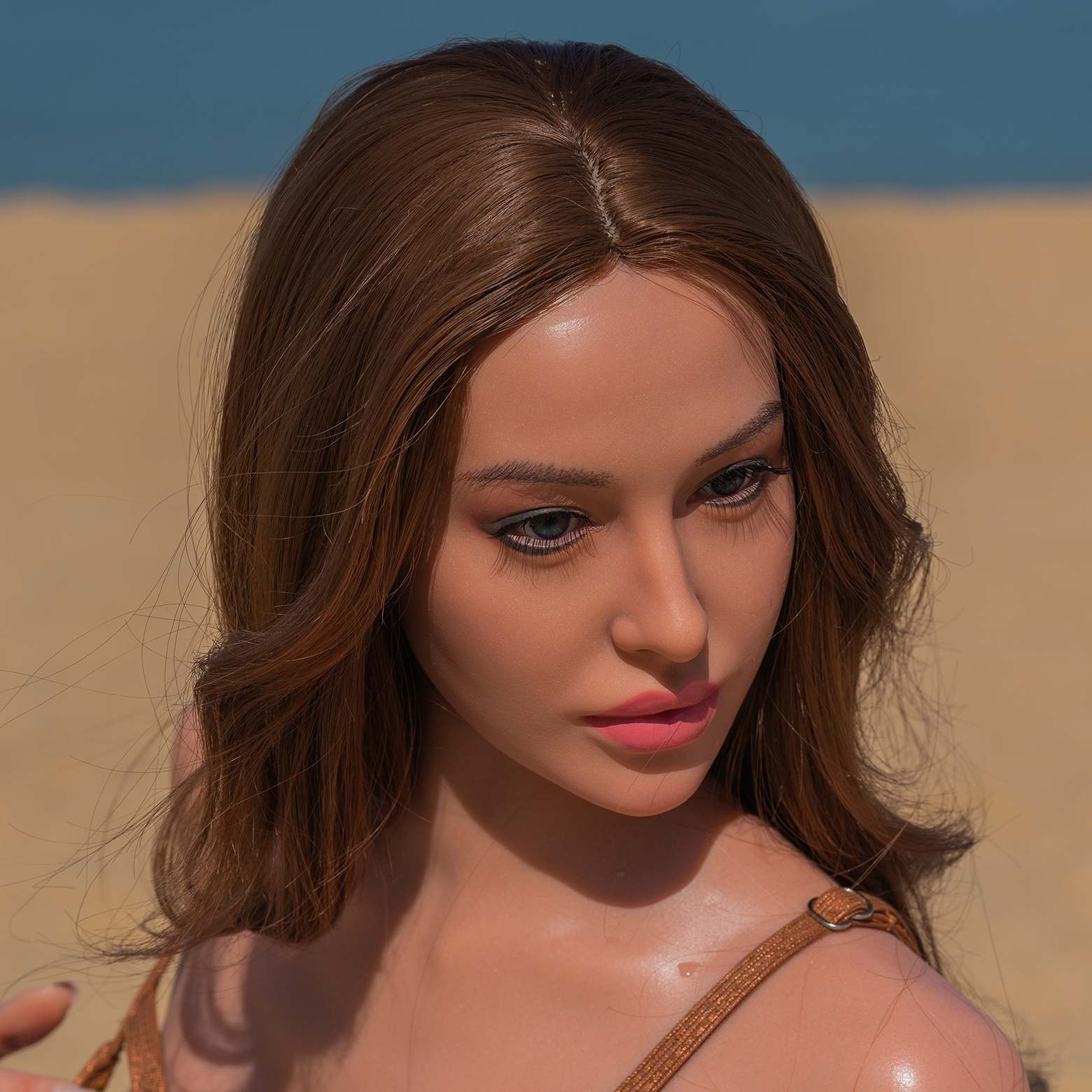 - 1 tête dure sans fonction orale mais avec des sourcils et des cils implantés.